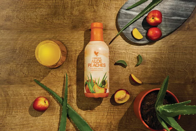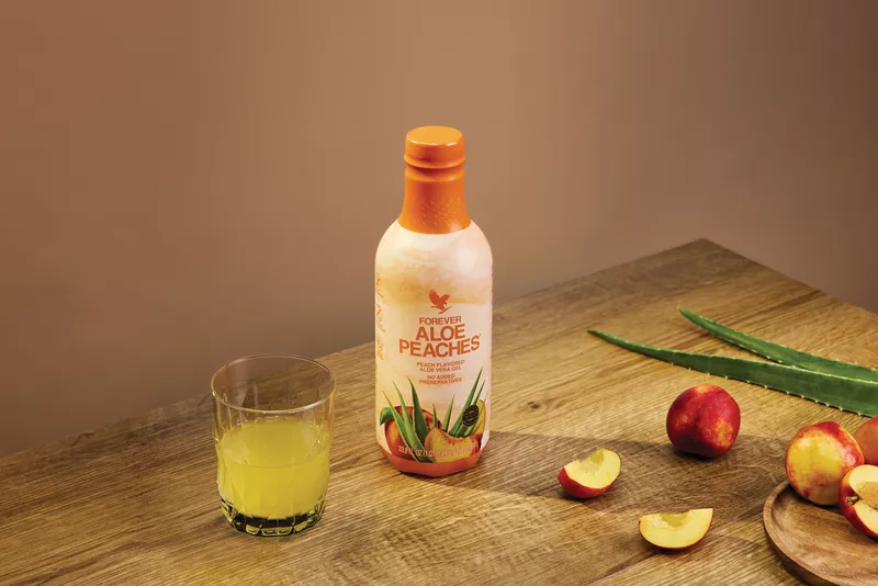 Forever je upario slatki, sočni okus breskvi dozrelih na suncu sa svim blagodatima čistog unutarnjeg lista aloe vera gela. Rezultat je ukusno piće koje ne samo da pomaže probavi, već je prepuno hranjivih tvari i antioksidansa. Forever Aloe Peaches odličan je način da svakodnevno pijete aloju. Ovaj napitak sadrži 84,3% čistog unutarnjeg lista aloe vere gela u kombinaciji s prirodnim pireom od breskve za održavanje vašeg imunološkog sustava i prirodne razine energije. Aloja se bere ručno s naših polja i prva je te vrste koja je dobila certifikat od strane Međunarodnog znanstvenog vijeća za aloju (IASC) za sadržaj i čistoću. Aloe vera ima prirodnu sposobnost čišćenja koja pomaže probavnom traktu da apsorbira hranjive tvari iz hrane koju jedemo u krvotok, istovremeno potičući rast prijateljskih bakterija. Jedinstveni polisaharid, acemannan i druge hranjive tvari u aloji pomažu modulirati i podržati imunološki sustav. Čisti stabilizirani gel aloe vere s unutarnjeg lista uparen je sa sočnim pireom breskve s kalcijem za robustan napitak slatkog okusa s visokim sadržajem vitamina i antioksidansa te se može pohvaliti svom hranjivom snagom aloe. Forever Aloe Peaches se aseptički obrađuje što omogućuje da formula ostane slobodna od dodanih konzervansa kako biste osigurali da uživate u svježem okusu sa svim moćnim svojstvima aloe baš kako je to priroda zamislila. Također je pakirana u PET boce koje se mogu 100% reciklirati i napravljene su od 50% reciklirane plastike nakon upotrebe, što daje ekološki prihvatljivu bocu koja je lagana, ali izdržljiva.
