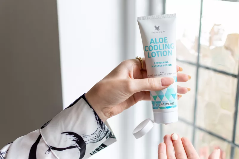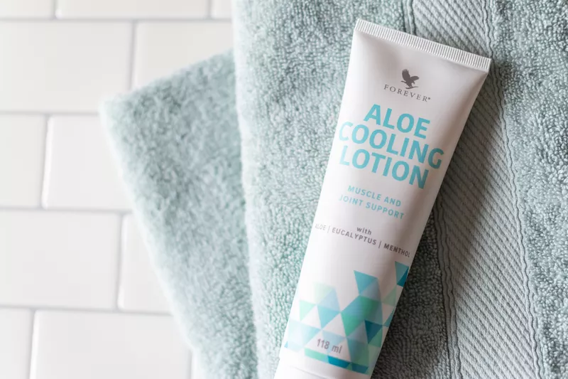 Losion za hlađenje od aloe daje koži umirujući osjećaj s mentolom koji podiže i daje energiju. Ulje eukaliptusa, kamfor i ekstrakt ružmarina doprinose okrepljujućem učinku. Dodavanje metilsulfonil metana ili MSM-a – organskog spoja poznatog kao “mineral ljepote” – može pomoći u poboljšanju osjećaja nelagode nakon vježbanja.